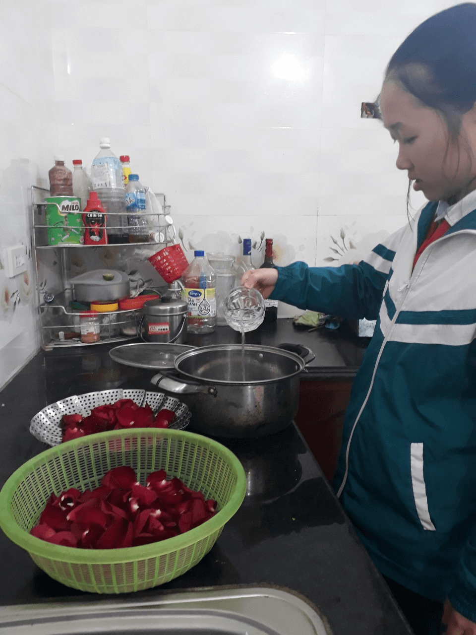 Hưởng ứng cuộc thi “Khoa học kỹ thuật và ngày hội STEM”, sản phẩm ” Nước rửa tay khô hương hoa hồng” đã ra đời đáp ứng nhu cầu phòng chống dịch bệnh Covid 19.